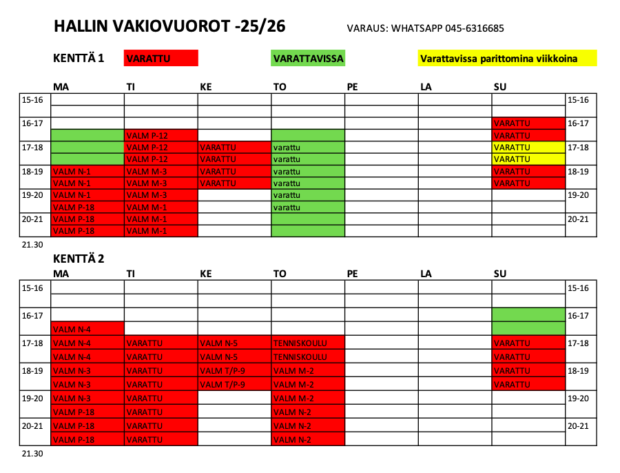Ulkokentiltä voi varata vakiovuoroja ottamalla yhteyttä seuraan. Ota yhteyttä.