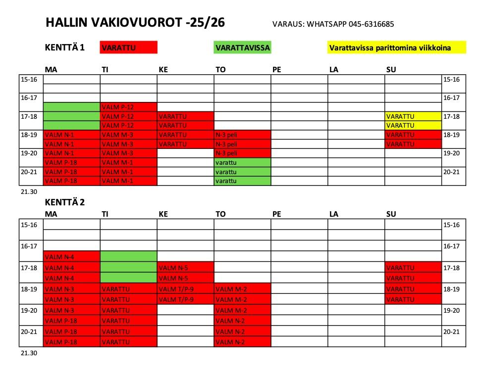 Ulkokentiltä voi varata vakiovuoroja ottamalla yhteyttä seuraan. Ota yhteyttä.