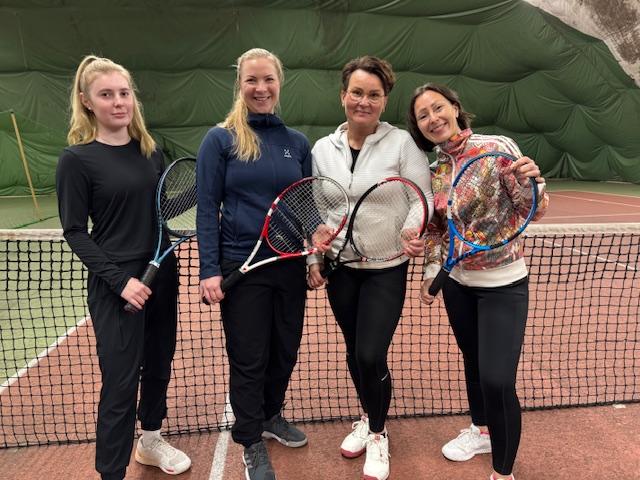 Kuvassa seuran naisten 4-div lohko D:n joukkue. Vasemmalta Helmi Myllylä, Pauliina Määttä, Erja Vilja ja Ulla Allonen. Joukkue pelasi 12.10.-25 Lahden Tenniskerhoa vastaan sarjapelin tuloksin: